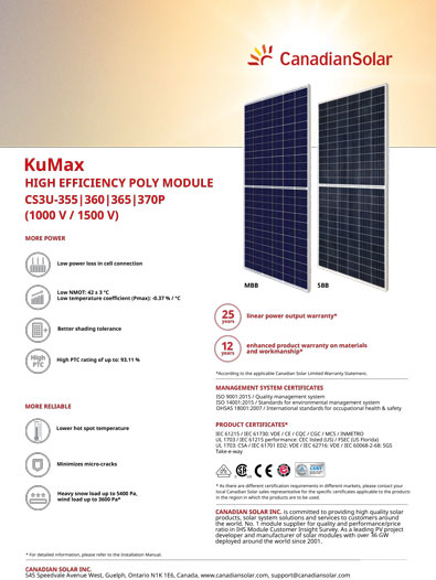 - Mã sản phẩm: KuMax POLY MODULE CS3U-365-370P